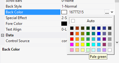 4.4.3.9. In the field Back Color choose a background color;