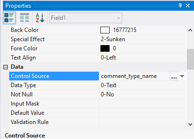 4.4.3.7. In the field Control Source select comment_type_id;