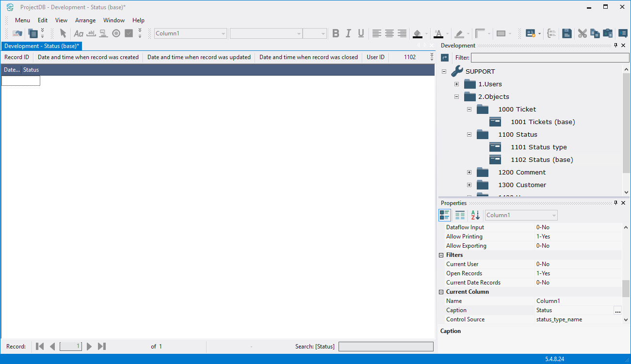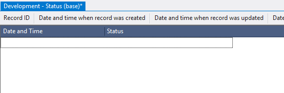 5.3.2.5. Select each column by clicking the left mouse button on any line of the table, specify in the field Caption the displayed name of the column - Date and Time, Status, respectively;