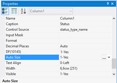 5.3.2.9. Select the last column and in the field Auto Size specify the value 1-Yes - column size will vary depending on the free space of the screen;