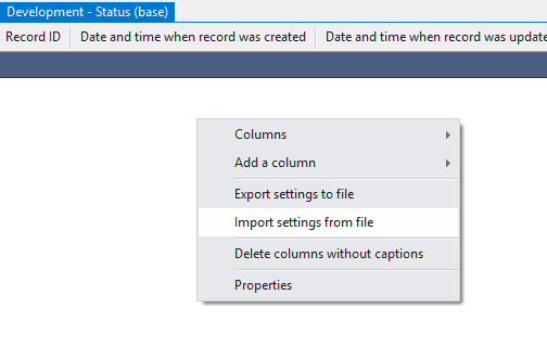 5.3.2.4. Open the context menu by right-clicking in the empty space of the object, choose Add a column and select columns dttmcr (date and time of status creation), status_type_name (status name);