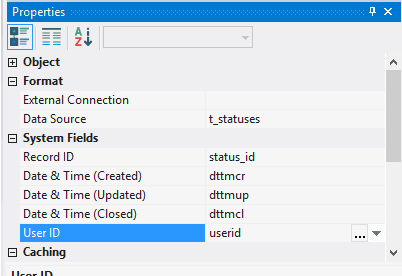 5.3.2.3. In system fields Record ID, Date & Time (Created), Date & Time (Updated), Date & Time (Closed), User ID, select accordingly fields user_id, dttmcr, dttmup, dttmcl, userid;