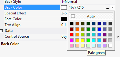 5.3.3.11. In the field Back Color choose a background color;