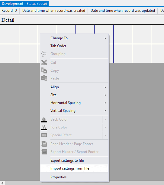 5.3.3.1. Go to Form Design by selecting View > Form Design, or by pressing the appropriate button in the toolbar;