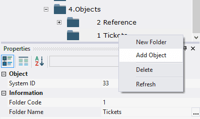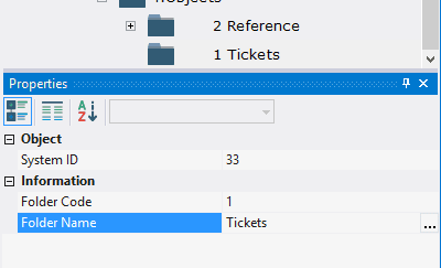 6.5.1.5. In the Properties window, type in 1 in the Folder Code field, type in Tickets in the Folder Name field;