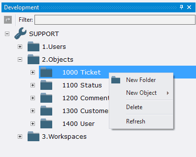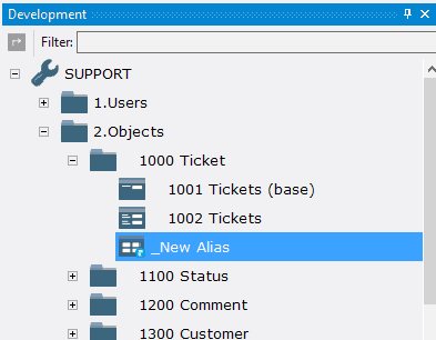 The object 1002 Tickets displays open tickets. It is logical to create a separate object for displaying closed tickets. The difference between objects is the current status of the ticket. It is convenient to use a separate type of object - an alias, which allows you to create a new object, taking already available one as a basis.