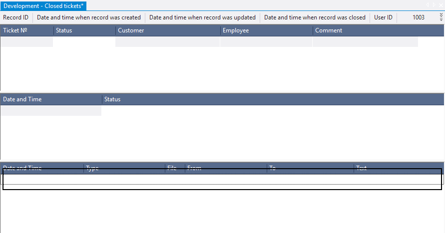 Now it is necessary to specify the conditions under which all current tickets should be displayed in the object 1002 Tickets, and all closed tickets - in the object 1003 Closed Tickets.
