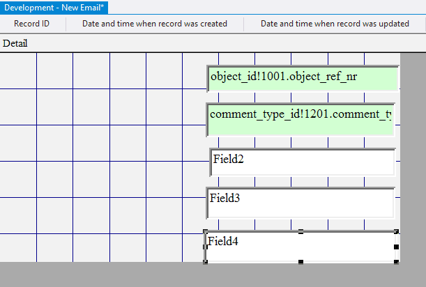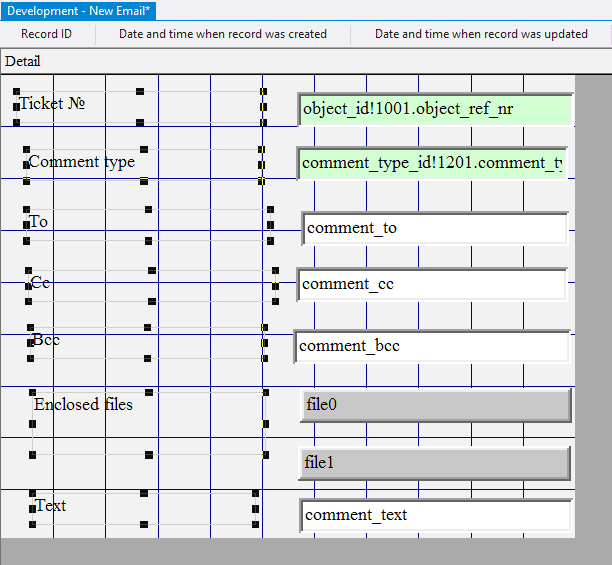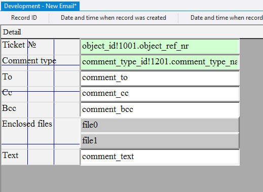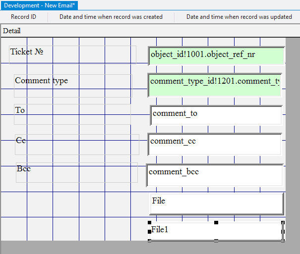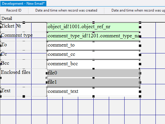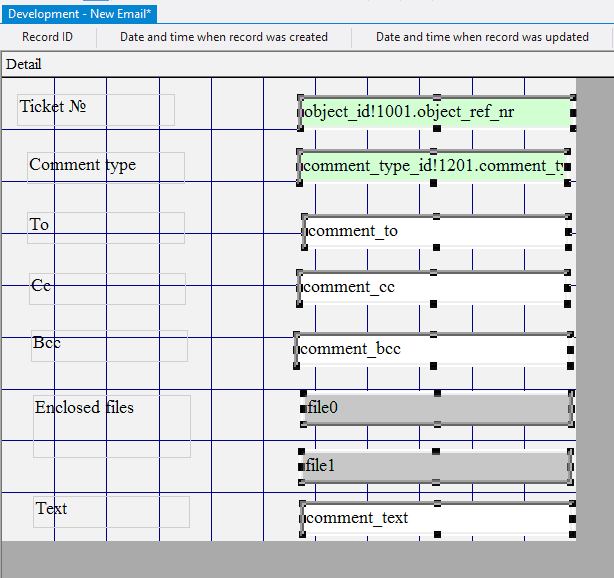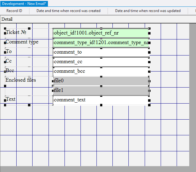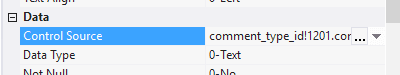 10.2.1.29. In the Control Source field for each added field enter comment_to, comment_cc, comment_bcc, respectively;