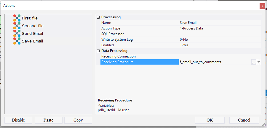 10.2.1.98. In the Receiving Procedure field select f_email_out_to_comments