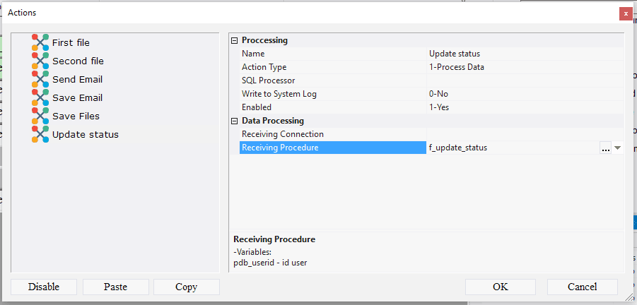 10.2.1.108. In the Receiving Procedure field select f_update_status