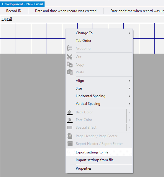 10.2.1.127. Open the context menu by right-clicking in the data area;