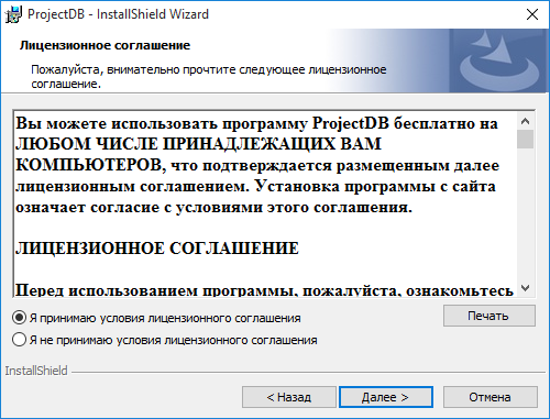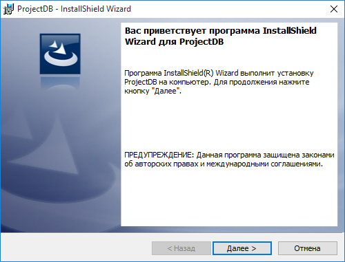 1.2.2.6. в появившемся окне указать путь до установочного файла ProjectDB_Setup.exe;