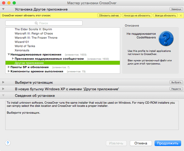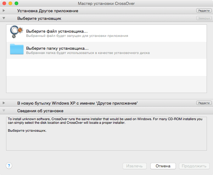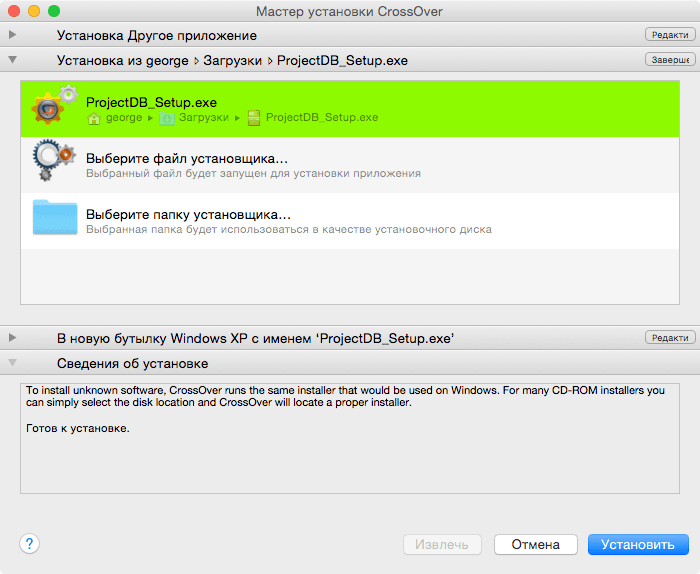 Для установки программы на операционной системе OS X с использованием программы CrossOver следует: