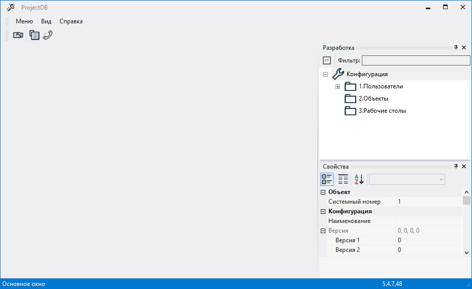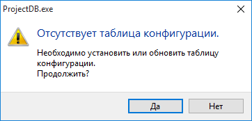 В базе данных будет создана таблица projectdb, которая будет хранить конфигурацию, а в программе отобразится интерфейс разработки конфигурации.