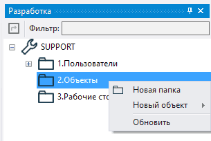 2.4.1.1. вызвать контекстное меню нажатием правой кнопки мыши по папке 2.Объекты;