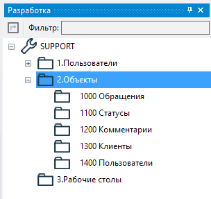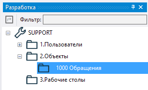 Созданная папка 1000 Обращения отобразится в папке 2.Объекты.