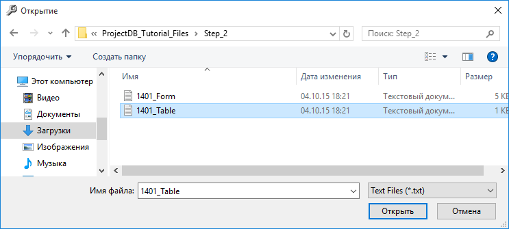 2.5.2.16. в появившемся окне указать путь к файлу 1401_Table;