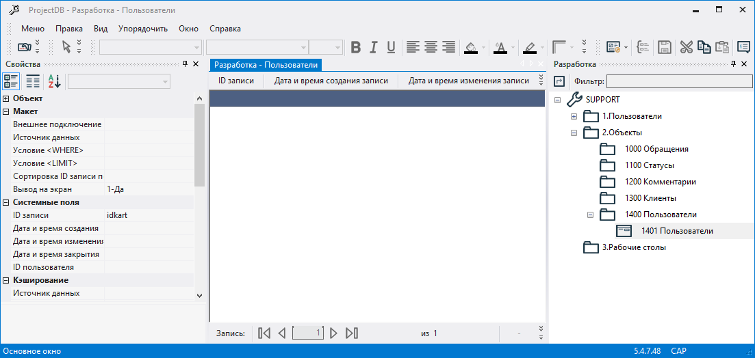Примечание: выполнение действия Удалить в программе ProjectDB не удаляет запись, а пишет дату и время выполнения действия в поле, указанное в поле Дата и время закрытия и скрывает запись; таким образом данные защищены от случайного удаления, а для их повторного отображения достаточно проставить значение null в поле dttmcl таблицы СУБД.