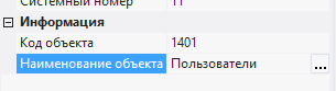 2.5.1.3. в окне Свойства в поле Код объекта ввести 1401;