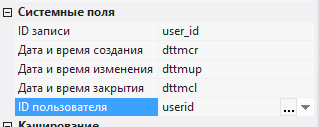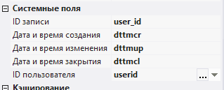2.5.3.3. в системных полях ID записи, Дата и время создания, Дата и время обновления, Дата и время закрытия, ID пользователя выбрать поля из таблицы - user_id, dttmcr, dttmup, dttmcl, userid;
