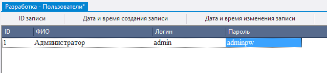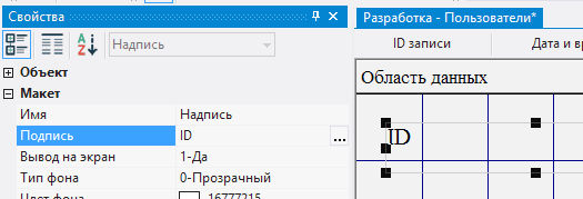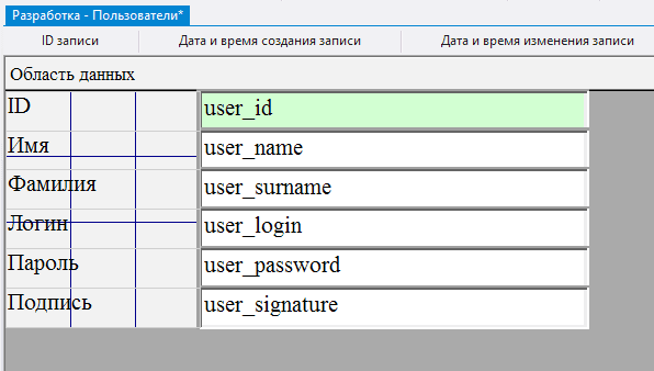 2.5.3.8. поскольку ID пользователя указывается автоматически на уровне СУБД, следует закрыть доступ к полю, указав в поле Доступ значение 0-Нет;