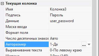 2.5.2.10. выделить последнюю колонку и установить в поле Авторазмер значение 1-Да - размер колонки будет изменяться в зависимости от свободного пространства экрана;