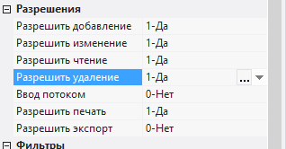 2.5.2.11. в полях Разрешить добавление, Разрешить изменение, Разрешить удаление выбрать значение 1-Да;