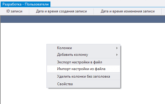 2.5.2.14. вызвать контекстное меню нажатием правой кнопки мыши в области данных;