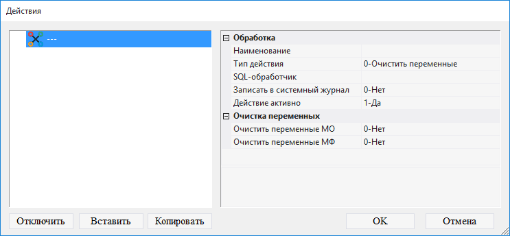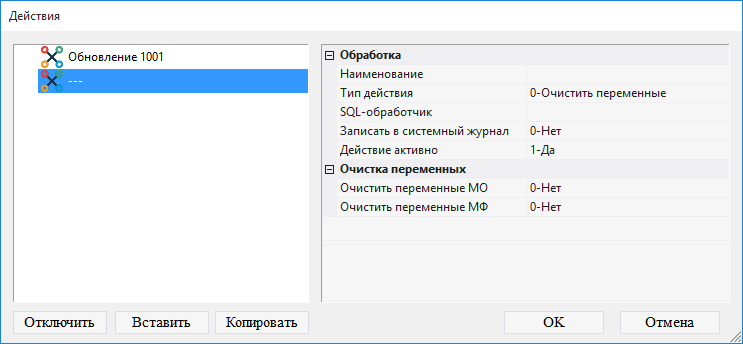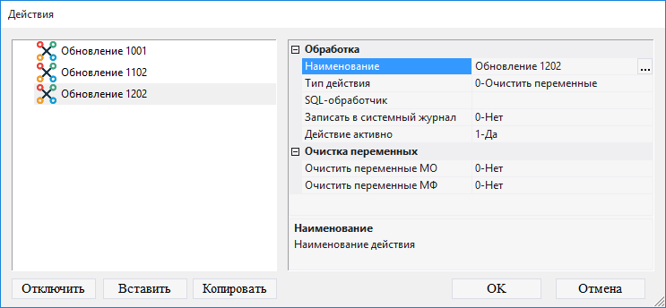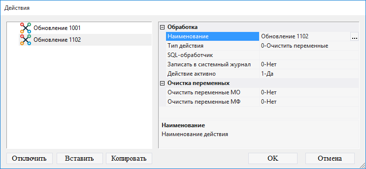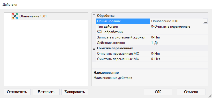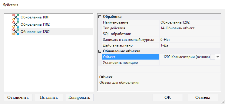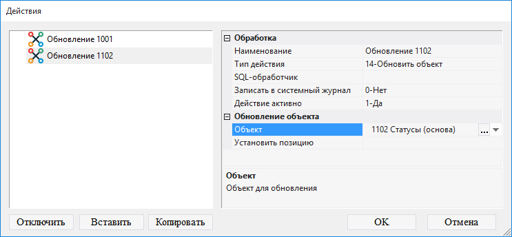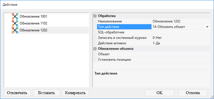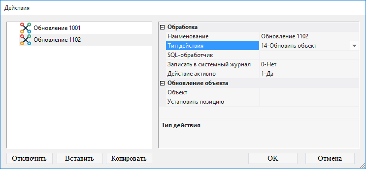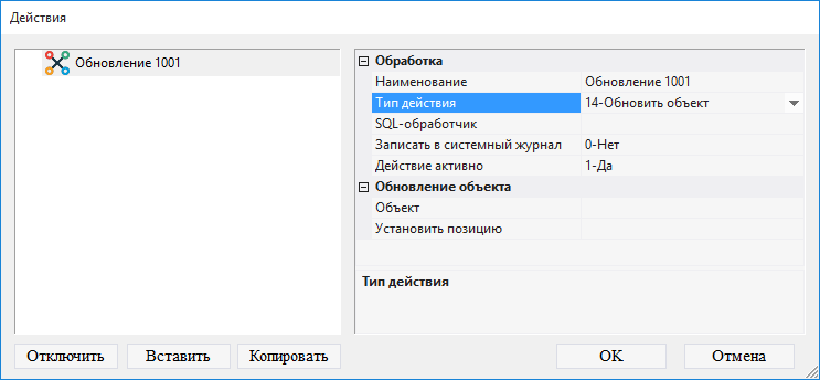 6.4.1.14. в поле Тип действия выбрать из выпадающего списка 14-Обновить объект;