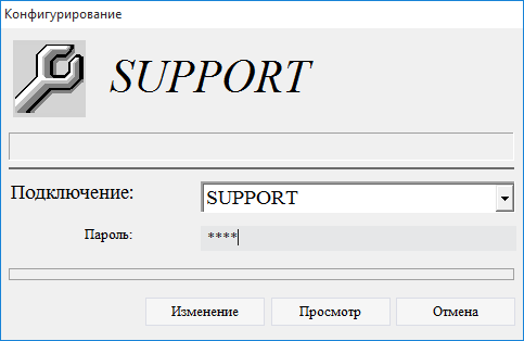 7.2.1.3. в окне Конфигурирование в поле Подключение выбрать подключение SUPPORT;