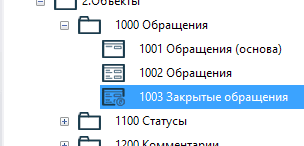 Объект 1002 Обращения отображает актуальные обращения. Логично создать отдельный объект для отображения закрытых обращений. При этом разница между объектами заключается в текущем статусе обращения. Удобно воспользоваться отдельным типом объекта - псевдоним, который позволяет создать новый объект, взяв за основу уже имеющийся.