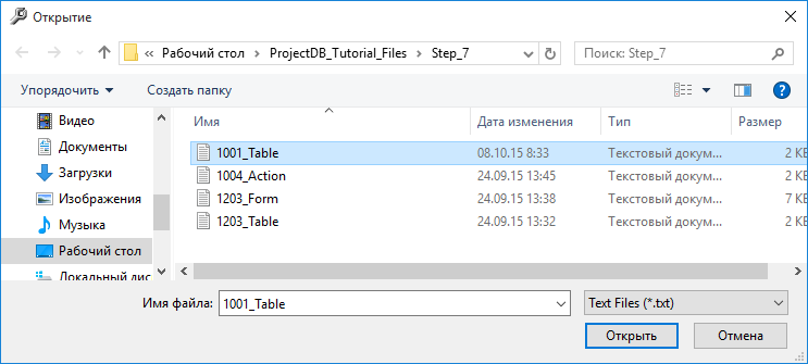 7.5.1.14. в появившемся окне указать путь к файлу 1001_Table;
