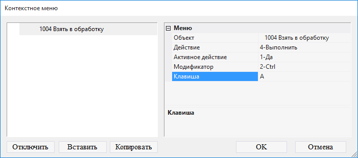 7.5.1.8. в поле Клавиша ввести букву A на английской раскладке клавиатуры;