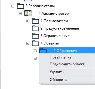7.5.2.4. вызвать контекстное меню папки 1 Обращения;