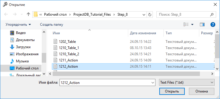 8.4.1.22. в появившемся окне указать путь к файлу 1212_Action;
