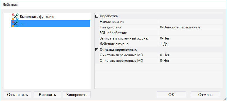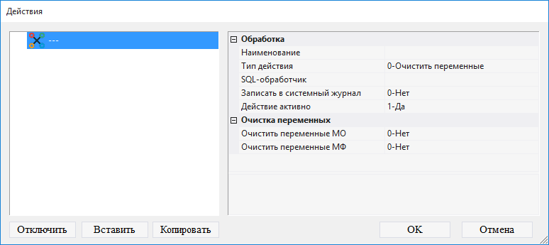 Внимание: если Вы хотите изучить механизм настройки действия детально, выполните шаги 8.4.1.5 - 8.4.1.17. Если Вы уже знакомы с тем, как осуществляется настройка действия, пропустите шаги 8.4.1.5 - 8.4.1.17 и перейдите к шагу 8.4.1.18.