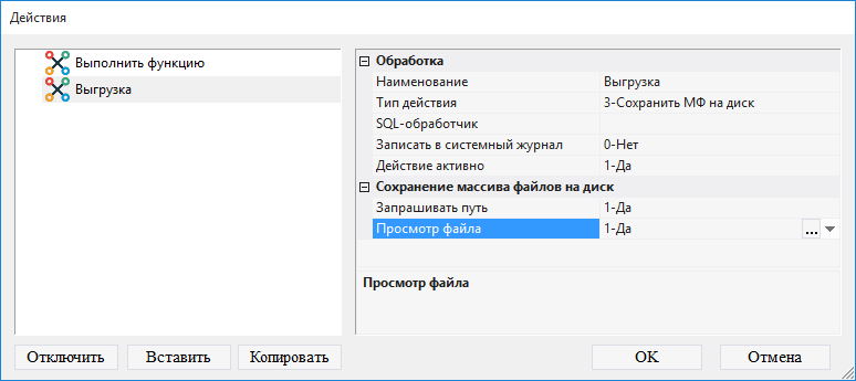 8.4.1.14. в поле Тип действия выбрать 3-Сохранить МФ на диск;