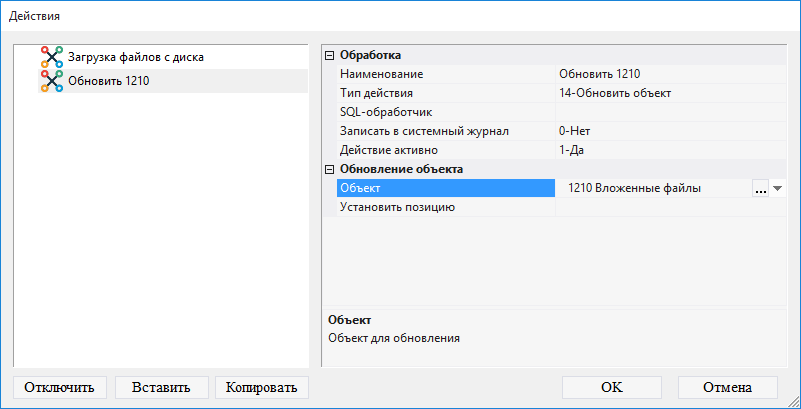 8.5.1.16. в поле Объект выбрать объект 1210 Вложенные файлы;
