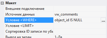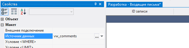 9.2.2.2. в поле Источник данных указать объект базы данных, данные из которого будут отображаться - представление vw_comments;
