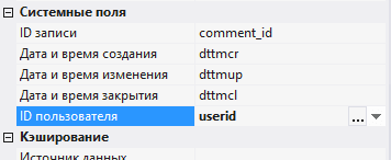 9.2.2.3. в cистемных полях ID записи, Дата и время создания, Дата и время обновления, Дата и время закрытия, ID пользователя выбрать поля - comment_id, dttmcr, dttmup, dttmcl, userid соответственно;