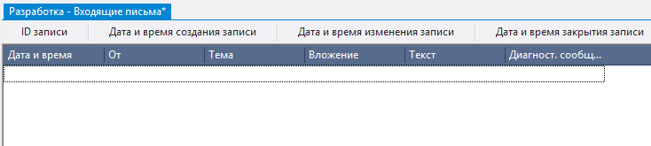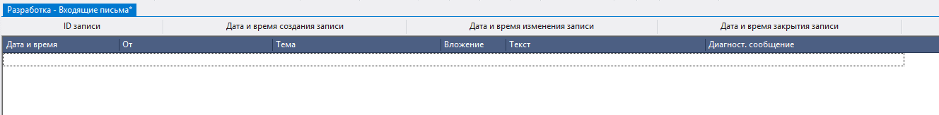 9.2.2.5. выбрать каждую из колонок нажатием левой кнопки мыши по любой строчке таблицы, ввести в поле Подпись отображаемое имя колонки - Дата и время, От, Тема, Вложение, Текст, Диагност. сообщение соответственно;