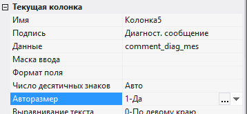 9.2.2.9. выделить последнюю колонку и установить в поле Авторазмер значение 1-Да - размер колонки будет изменяться в зависимости от свободного пространства экрана;