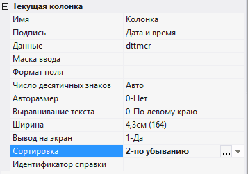 9.2.2.10. выделить колонку dttmcr и установить в поле Сортировка значение 2-по убыванию;