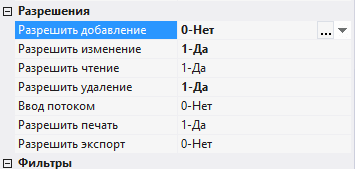 9.2.2.11. в полях Разрешить изменение, Разрешить удаление выбрать значение 1-Да;