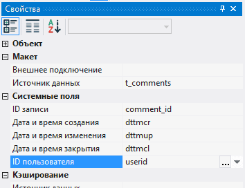 9.2.3.3. в системных полях ID записи, Дата и время создания, Дата и время обновления, Дата и время закрытия, ID пользователя выбрать поля из таблицы - comment_id, dttmcr, dttmup, dttmcl, userid;