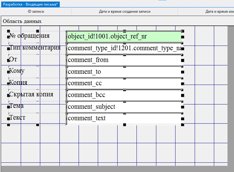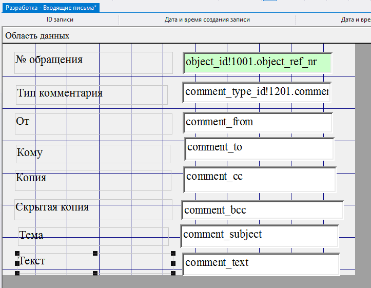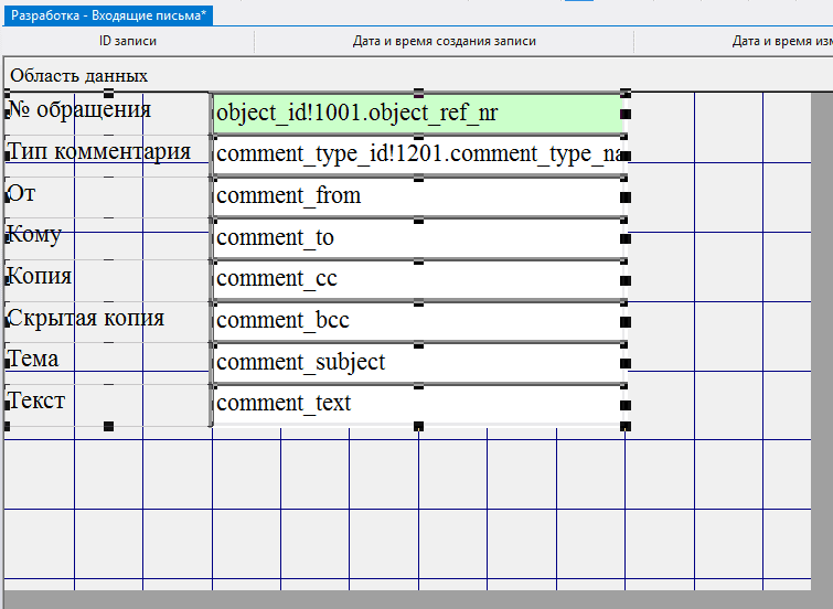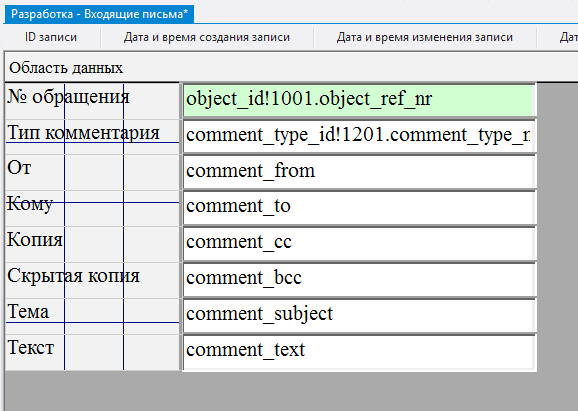 9.2.3.8. ввести значение object_id!1001.object_ref_nr, поскольку данное поле будет ссылаться на объект 1001 Обращения (основа) и отображать номер выбранного обращения при измененини комментария;