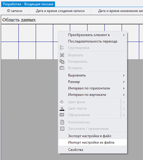9.2.2.16. вызвать контекстное меню нажатием правой кнопки мыши в области данных;