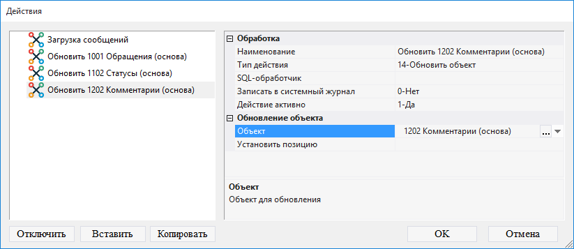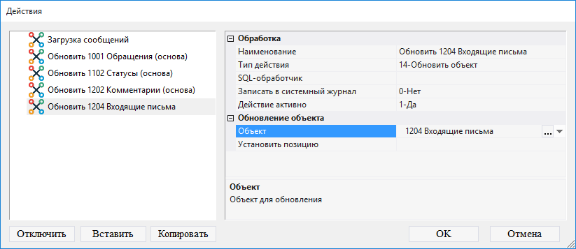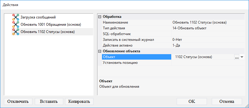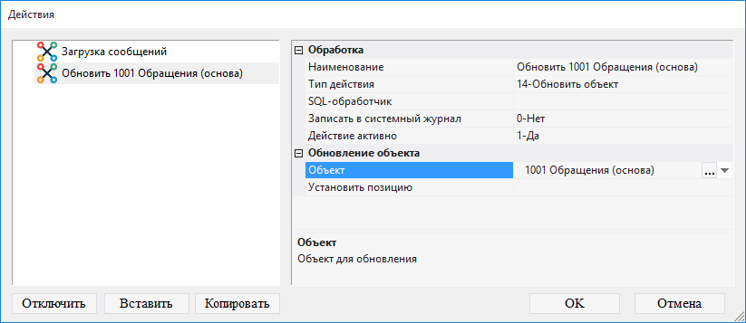 9.3.1.33. в поле Тип действия выбрать 14-Обновить объект;