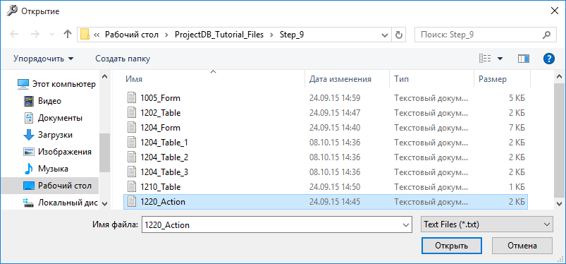 9.3.1.44. в появившемся окне указать путь к файлу 1220_Action;