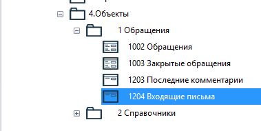 9.7.1.6. в поле Объект выбрать таблицу 1204 Входящие письма.